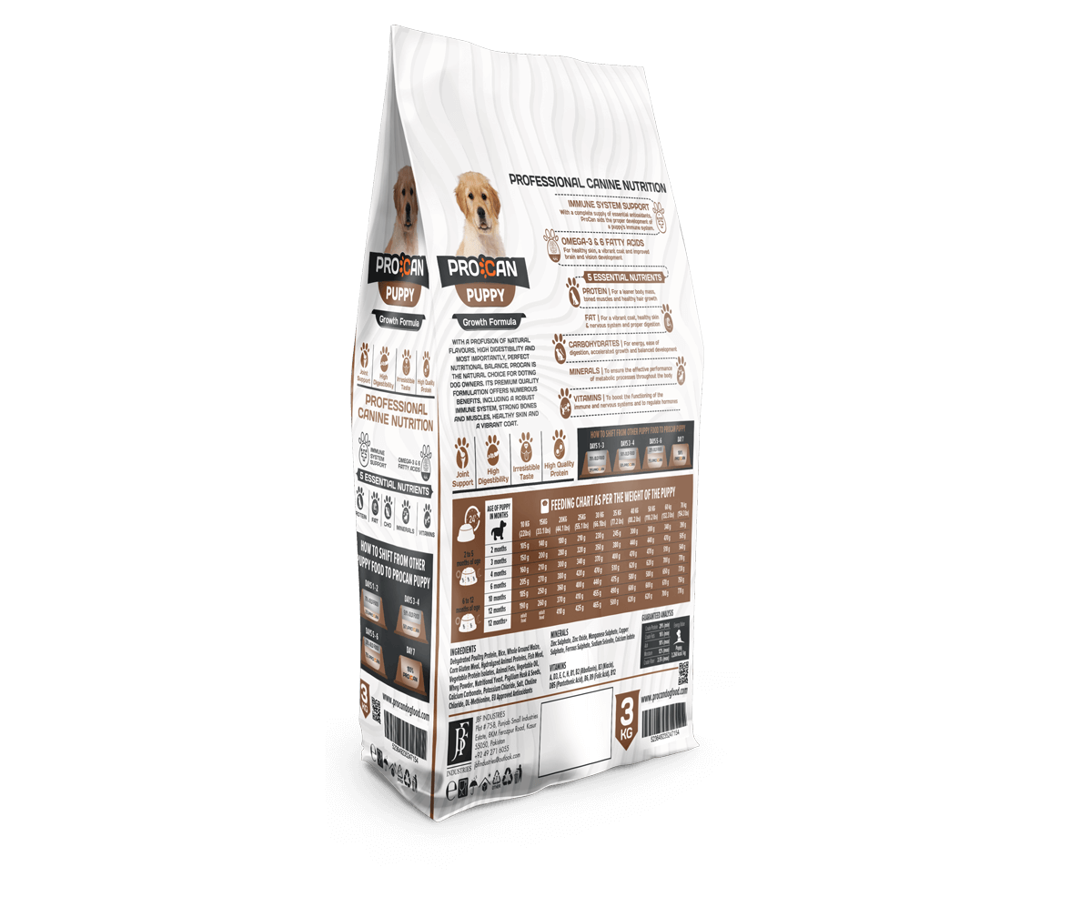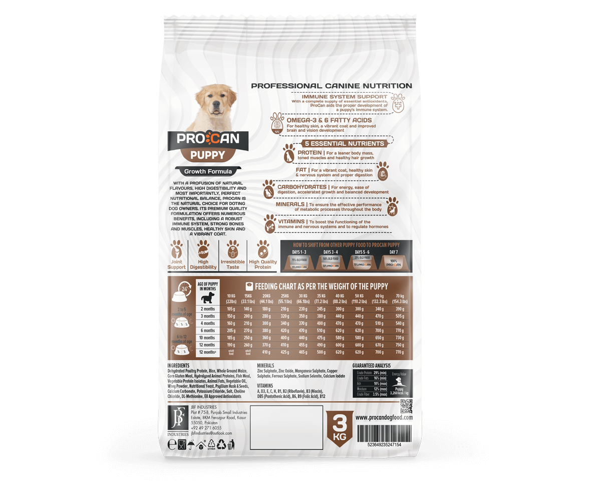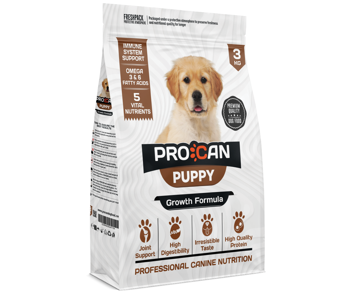 Puppies need a diet that supports their rapid growth and increased levels of activity. This means a lot of proteins, calories from the right sources and a whole array of nutrients to support metabolism. ProCan provides all this, and plenty more!